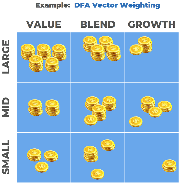 DFA’s Vector equity series amplify these tilts even further, placing greater emphasis on smaller companies and value stocks than the Core series.