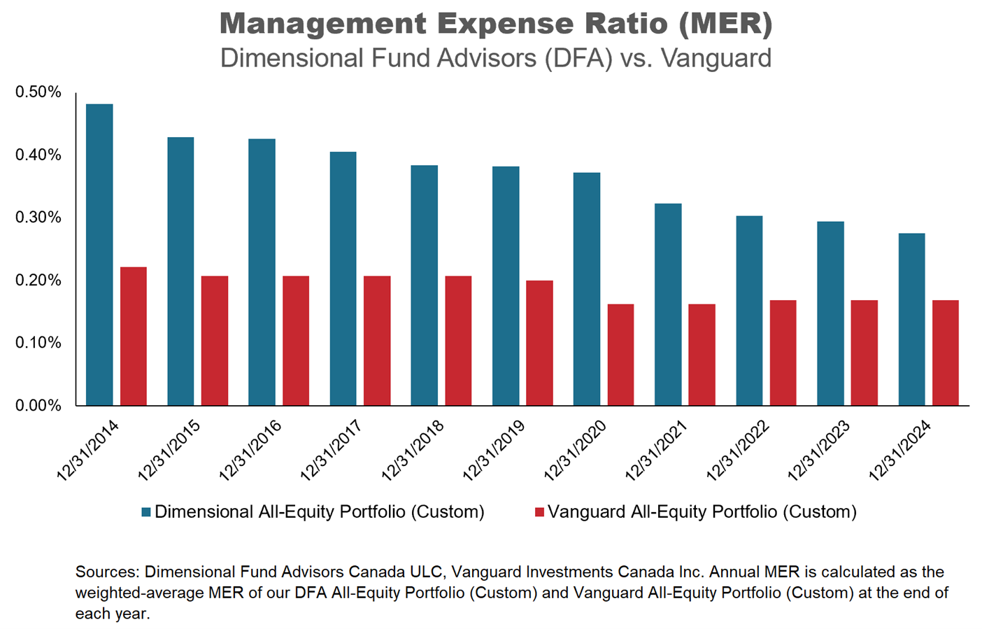 Management Expense Ratios (MERs): Dimensional Fund Advisors (DFA) vs. Vanguard